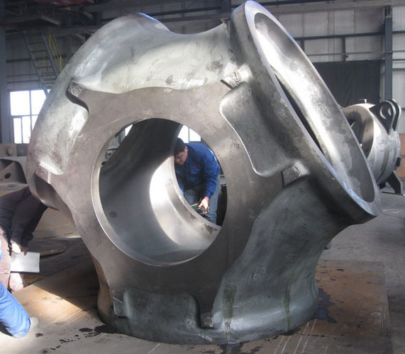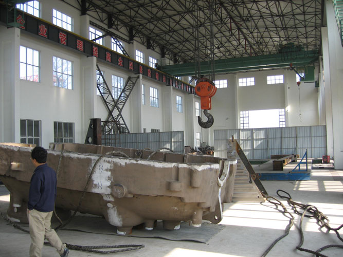 13 Gussteile, Gesamtgewicht 80 Tonnen, schwerstes Teil 15 Tonnen.
